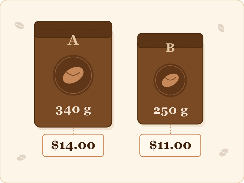 Example 3: The same coffee is sold in two different bag sizes. Which size is a better deal?